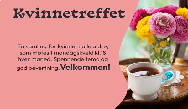 En samling for kvinner i alle aldre, som møtes 1 mandagskveld hver måned. Spennende tema og god bevertning. VELKOMMEN!